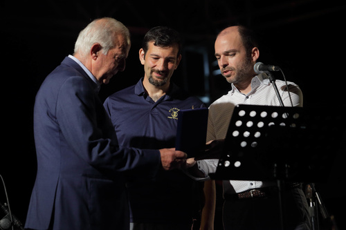 Πριν την βράβευση, σύντομο χαιρετισμό απηύθυνε ο Αντιδήμαρχος Παιδείας και αρμόδιος της Φιλαρμονικής Γιώργος Βλαχάκης.