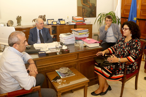 Μετά την ολοκλήρωση της συνάντησης, ο Δήμαρχος δώρισε συμβολικά στην κ. Καραμεσίνη ένα αναμνηστικό μετάλλιο του Αθλητικού Οργανισμού του Δήμου Ηρακλείου.
