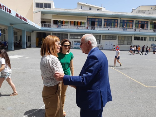 Το σχολικό συγκρότημα της πρώην Παιδαγωγικής Ακαδημίας επισκέφθηκε σήμερα, Παρασκευή 8 Ιουνίου, ο Δήμαρχος Ηρακλείου Βασίλης Λαμπρινός, συνοδευόμενος από τον Αντιδήμαρχο Τεχνικών Έργων Γιάννη Αναστασάκη και κλιμάκιο της Τεχνικής Υπηρεσίας. Ο Δήμαρχος είχε την ευκαιρία να ενημερώσει τους καθηγητές, τους δασκάλους και τους εκπροσώπους των Συλλόγων Γονέων και Κηδεμόνων των σχολείων που στεγάζονται στο κτίριο (53ο και 54ο Δημοτικό, 1ο Ειδικό Δημοτικό, 2ο Ειδικό Νηπιαγωγείο) για τις πορείες των εργασιών ελέγχων του συγκροτήματος, οι οποίες ξεκίνησαν αμέσως μετά την υπογραφή της σύμβασης στις 29 Σεπτεμβρίου 2017, με στόχο την αναβάθμισή του και κυρίως την ασφάλεια των μαθητών και των διδασκόντων.