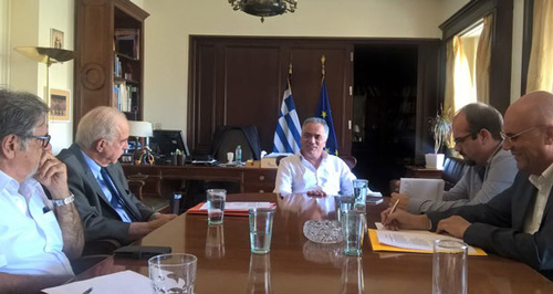 Τις προτάσεις της ΠΕΔ Κρήτης σχετικά με το νομοσχέδιο «Κλεισθένης 1» , εξέθεσε αναλυτικά το μεσημέρι της Δευτέρας 25 Ιουνίου στον Υπουργό Εσωτερικών Πάνο Σκουρλέτη, αντιπροσωπεία των Δημάρχων του Νησιού, με επικεφαλής τον Δήμαρχο Ηρακλείου και πρόεδρο της ΠΕΔ Βασίλη Λαμπρινό.
