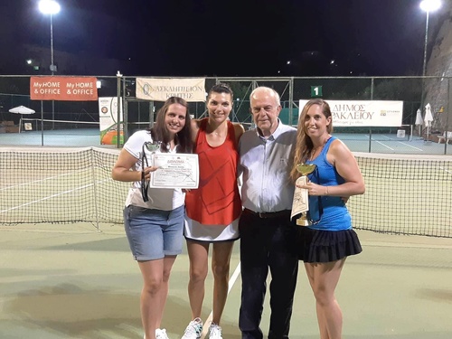 Με μεγάλη επιτυχία, παρουσία και του Δημάρχου Ηρακλείου Βασίλη Λαμπρινού, ολοκληρώθηκε το βράδυ της Κυριακής 24 Ιουνίου, το 5ο τουρνουά τένις του Δήμου Ηρακλείου, στις εγκαταστάσεις του Ο.Α.Α.Η.. Ο Δήμαρχος απένειμε τα τρόπαια στους νικητές, στις κατηγορίες του απλού ανδρών και γυναικών . Πριν τις απονομές, στον σύντομο χαιρετισμό του ανέφερε: «Αξίζουν συγχαρητήρια στους διοργανωτές και σε όσους αγωνίστηκαν, είτε νίκησαν, είτε όχι. Το δικό μας χρυσό μετάλλιο είναι το ρεκόρ συμμετοχών που σημείωσε το τουρνουά φέτος. Διότι αυτό σημαίνει ότι ο βασικός στόχος μας, να προσφέρουμε την δυνατότητα σε όσο το δυνατόν περισσότερους δημότες να αθλούνται καθημερινώς, επιτυγχάνεται. Στο βαθμό που μας αναλογεί και πάντα στο μέτρο των δυνατοτήτων μας, θα συνεχίσουμε να διοργανώνουμε τουρνουά , σε όλα τα αθλήματα και για όλες τις ηλικίες, διότι θεωρούμε ότι τα οφέλη της άθλησης δεν περιορίζονται στις γραμμές ενός γηπέδου ή στους τοίχους ενός γυμναστηρίου. Αφορούν επί της ουσίας στην ίδια την ποιότητα ζωής των δημοτών. Την οποία προσπαθούμε να αναβαθμίσουμε και μέσω του αθλητισμού».