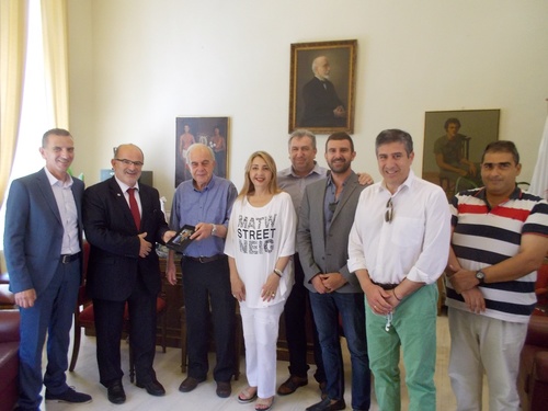 Με τον Δήμαρχο Ηρακλείου Βασίλη Λαμπρινό στο γραφείο του στην Λότζια συναντήθηκε σήμερα, Πέμπτη 7 Ιουνίου ο πρόεδρος της Γενικής Συνομοσπονδίας Επαγγελματιών, Βιοτεχνών και Εμπόρων Ελλάδας (ΓΣΕΒΕΕ) Γιώργος Καββαθάς, παρουσία του Αντιδημάρχου Προγραμματισμού Πέτρου Ινιωτάκη. Στην συνάντηση παρευρέθη ο πρόεδρος της ΟΕΒΕΝΗ Χαράλαμπος Λεκάκης καθώς και αντιπροσωπεία των συμμετεχόντων στο «1ο Συμπόσιο Οικονομίας – Επιχειρηματικότητας και Καινοτομίας» που θα πραγματοποιηθεί στο Επιμελητήριο Ηρακλείου την Παρασκευή 8 και το Σάββατο 9 Ιουνίου. Το Συμπόσιο διοργανώνει ο Δήμος Ηρακλείου και γίνεται στο πλαίσιο λειτουργίας του Δημοτικού Κέντρου προώθησης του Δομημένου Δημοκρατικού Διαλόγου, της Καινοτομίας & Επιχειρηματικότητας με το διακριτικό τίτλο «Δημοσκόπιο».