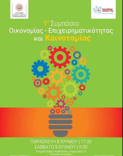 Ο Δήμος Ηρακλείου θέλοντας να δώσει ώθηση στην τοπική επιχειρηματικότητα με καινοτόμες ιδέες και αξιοποιώντας τις νέες τεχνολογίες διοργανώνει το 1ο Συμπόσιο « Οικονομίας Επιχειρηματικότητας και Καινοτομίας», στο οποίο θα συμμετέχουν και θα μιλήσουν σημαντικές προσωπικότητες από τον οικονομικό, ακαδημαϊκό και επιχειρηματικό χώρο του τόπου μας.
