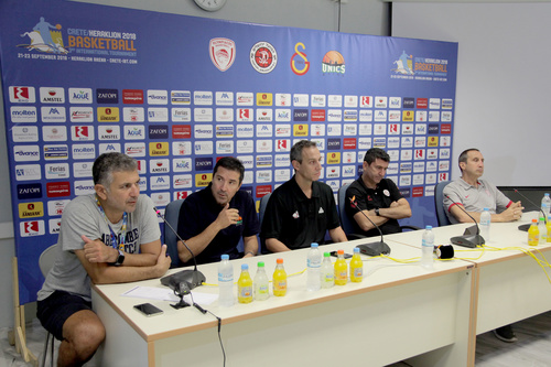 Συνέντευξη τύπου έδωσαν οι τέσσερις προπονητές των ομάδων που μετέχουν στο 3ο Διεθνές Τουρνουά Μπάσκετ Κρήτης που διεξάγεται στο Ηράκλειο με την συνδιοργάνωση του Δήμου Ηρακλείου, επαινώντας αρχικά την άριστη οργάνωση και τη φιλοξενία των διοργανωτών, την παρουσία του κόσμου και επισημαίνοντας ο καθένας από τη δική του σκοπιά τη σημασία της συμμετοχής των ομάδων τους στη διοργάνωση. Αναλυτικά:
