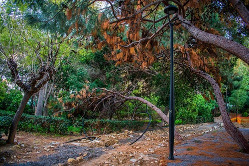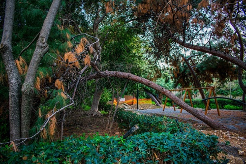 Μετά τις τελευταίες πολύ έντονες βροχοπτώσεις, τρία (3) δέντρα εντός του χώρου της παιδικής χαράς του Πάρκου Γεωργιάδη πήραν μεγάλη κλίση.