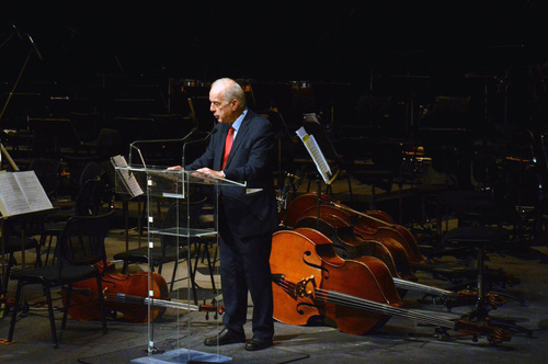 Όλα αυτά όμως, λίγο ως πολύ γνωστά στους περισσότερους, ανήκουν πια στο παρελθόν. Κι αυτή είναι ώρα χαράς, όχι μεμψιμοιρίας. Χαράς, ικανοποίησης κι ανυπομονησίας γι ό,τι πρόκειται να συμβεί. Σε λίγα λεπτά, η μεγάλη Αίθουσα του Πολιτιστικού και Συνεδριακού Κέντρου Ηρακλείου φιλοξενεί την πρώτη της συναυλία! Σε λίγα λεπτά θα απολαύσουμε εδώ τη Συμφωνική Ορχήστρας της ΕΡΤ , τους εκλεκτούς καλλιτέχνες της οποίας ευχαριστούμε θερμά για τη σημερινή τους παρουσία -σε μια συναυλία με εξαιρετικούς σολίστ και έργα σπουδαίων συνθετών, όπως του Μίκη Θεοδωράκη και του συντοπίτη μας Γιάννη Μαρκόπουλου που είναι μαζί μας απόψε. Μαζί μας είναι και ένας ακόμα σπουδαίος συνθέτης, συντοπίτης μας κι εκείνος, ο πρόεδρος της ΕΡΤ Χρήστος Λεοντής, τον οποίο επίσης ευχαριστούμε για την συμβολή του στην διεξαγωγή της συναυλίας.