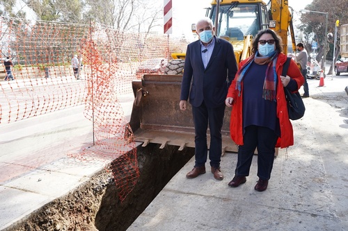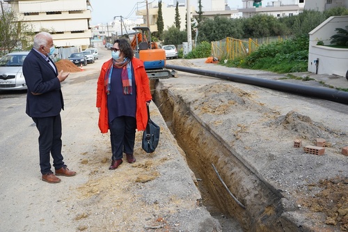 Στη συνέχεια έγινε αυτοψία στις εργασίες που πραγματοποιούνται στην οδό Ανωγειαννάκη, στην περιοχή της Ηλιούπολης. Πρόκειται για το έργο που χρηματοδοτείται από το Πρόγραμμα Δημοσίων Επενδύσεων, με ποσό σύμβασης 181.071,94 €, και αφορά στην ενίσχυση της τροφοδοσίας της δεξαμενής στην περιοχή της Φορτέτσας.