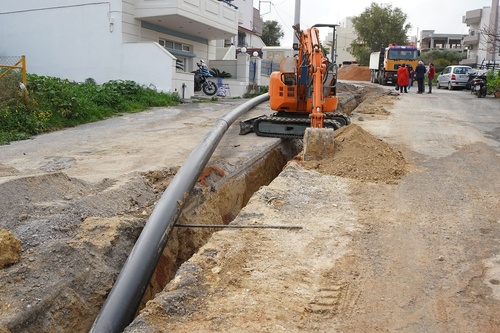 Αρχικά έγινε αυτοψία στις εργασίες κατασκευής αγωγού ύδρευσης στην οδό Δημοκρατίας, από το ύψος της οδού Πεδιάδος μέχρι και το ύψος του Καπετανάκειου, προκειμένου να ενισχυθεί η υδροδότηση του κέντρου από τη νέα δεξαμενή στην περιοχή παπά Τίτου Μετόχι. Οι εργασίες αυτές ξεκίνησαν αρχές Μαρτίου, μετά την έγκριση του Τοπικού Αρχαιολογικού Συμβουλίου και υπό την επίβλεψη της Εφορίας Αρχαιοτήτων Ηρακλείου και αναμένεται να έχουν ολοκληρωθεί μέχρι τα μέσα Απριλίου. Το έργο αυτό περιλαμβάνει τροφοδοτικό αγωγό ύδρευσης, ένα φρεάτιο ύδρευσης με τις αντίστοιχες συσκευές καθώς και συνδέσεις αγωγών που θα χρειαστούν για την βελτίωση στην υδροδότηση του Κέντρου της πόλης αλλά και των περιοχών Πόρου και Κατσαμπά. Το ποσό της σύμβασης του έργου, που χρηματοδοτείται από ίδιους πόρους της ΔΕΥΑΗ, είναι 52.030, 96 ευρώ.