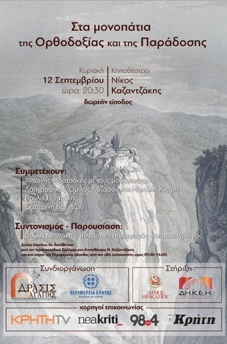 Ο Ιεραποστολικός και Φιλανθρωπικός Σύλλογος «Δράσις Αγάπης» παρουσιάζει τη μουσικοχορευτική εκδήλωση «Στα μονοπάτια της ορθοδοξίας και της παράδοσης» την Κυριακή 12 Σεπτεμβρίου στο κηποθέατρο «Ν. Καζαντζάκης».