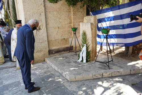 Μετά το τέλος της Θείας Λειτουργίας εψάλη επιμνημόσυνη δέηση, στον αύλειο χώρο του ναού, για τους σφαγιασθέντες την 25η Αυγούστου του 1898. Ακολούθησε  κατάθεση στεφάνων από τον Δήμαρχο Ηρακλείου Βασίλη Λαμπρινό, τον Ευρωβουλευτή Μανόλη Κεφαλογιάννη, τον Βουλευτή Νίκο Ηγουμενίδη, , την Συντονίστρια της Αποκεντρωμένης Διοίκησης Κρήτης Μαρία Κοζυράκη, τον Αντιπεριφερειάρχη Ηρακλείου Νίκο Συριγωνάκη, τον Ανώτερο Διοικητή Φρουράς Ηρακλείου Βασίλειο Βασιλειάδη και  τους  εκπροσώπους των Ενώσεων Αποστράτων Αξιωματικών Στρατού και Αεροπορίας.