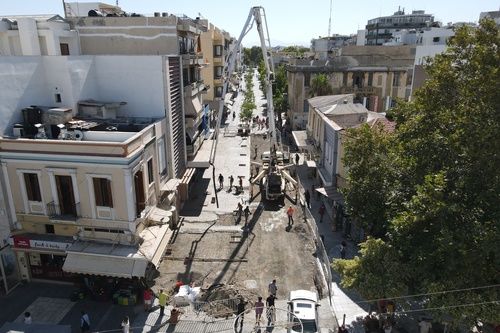 Η εκτέλεση του έργου ξεκίνησε στις αρχές Ιουνίου και μέχρι σήμερα έχουν πραγματοποιηθεί όλες οι υποδομές ύδρευσης , άρδευσης, αποχέτευσης, ομβρίων και ακαθάρτων, όπως και οι υποδομές ηλεκτροφωτισμού καθώς και όλες οι εργασίες για την λειτουργία του πεζόδρομου (υπογειοποίηση δικτύων ΟΤΕ, ΔΕΗ, κινητής τηλεφωνίας) . Παράλληλα έχει κατασκευαστεί η σκυροδέτηση που επιτρέπει την ομαλή διέλευση των πεζών και το αμέσως προσεχές διάστημα ξεκινά η κεντρική σκυροδέτηση των επιστρώσεων.