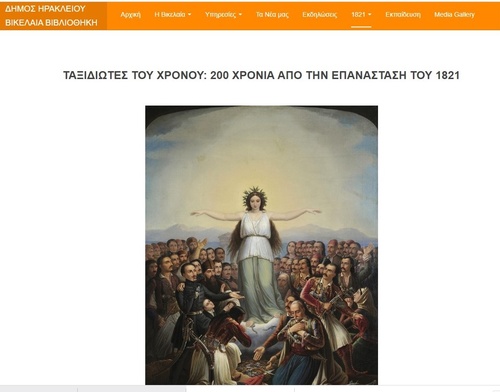 Στο πλαίσιο του εορτασμού των 200 χρόνων από την έναρξη του απελευθερωτικού αγώνα των Ελλήνων από την Οθωμανική Αυτοκρατορία και τη δημιουργία ανεξάρτητου κράτους, η Βικελαία Δημοτική Βιβλιοθήκη του Ηρακλείου γιορτάζει την επέτειο αυτή με το εκπαιδευτικό πρόγραμμα: «ΤΑΞΙΔΙΩΤΕΣ ΤΟΥ ΧΡΟΝΟΥ: 200 ΧΡΟΝΙΑ ΑΠΟ ΤΗΝ ΕΠΑΝΑΣΤΑΣΗ ΤΟΥ 1821». Το πρόγραμμα σχεδιάστηκε από τη «ΒΔΒ» σε συνεργασία με το ΕΛΛΗΝΙΚΟ ΚΕΝΤΡΟ ΠΟΛΙΤΙΣΤΙΚΗΣ ΚΑΙ ΜΟΥΣΕΙΑΚΗΣ ΕΚΠΑΙΔΕΥΣΗΣ, ενώ η ιστορική και φιλολογική του επιμέλεια έγινε από την κ. Μαρία Καλογεράκη, Ιστορικό (PhD στη νεότερη ελληνική ιστορία).