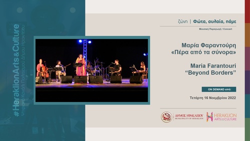 Η συναυλία της σπουδαίας Μαρίας Φαραντούρη «Πέρα από τα Σύνορα», μια παραγωγή του Φεστιβάλ Αθηνών και Επιδαύρου, που παρουσιάσθηκε για πρώτη φορά στο Ηρώδειο το 2017 και ανέβηκε στην Κρήτη το καλοκαίρι του 2018 στο πλαίσιο του Φεστιβάλ του Δήμου Ηράκλειου «Κρήτη Μια Ιστορία, 5+1 Πολιτισμοί, είναι πλέον διαθέσιμη στο διαδικτυακό κανάλι πολιτισμού του Δήμου Ηρακλείου – Heraklion Arts and Culture και στη Ζώνη θέασης «Φώτα, Αυλαία, Πάμε». Οι ενδιαφερόμενοι μπορούν να την παρακολουθήσουν στον παρακάτω σύνδεσμο: https://youtu.be/SRpFkmLcljY