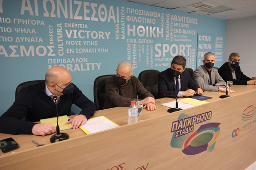 Δύο πολύ σημαντικές προγραμματικές συμβάσεις για την περαιτέρω αναβάθμιση του Παγκρητίου Σταδίου υπέγραψαν το πρωί του Σαββάτου 2 Απριλίου 2022, στην αίθουσα τύπου του Σταδίου, ο Δήμαρχος Ηρακλείου Βασίλης Λαμπρινός και ο Υφυπουργός Πολιτισμού και Αθλητισμού Λευτέρης Αυγενάκης, παρουσία του Αντιδημάρχου Κυκλικής Οικονομίας, Περιβάλλοντος και Αθλητισμού Κώστα Βαρδαβά, του Αντιδημάρχου Τεχνικών Έργων Γιάννη Αναστασάκη και του Προέδρου της Οργανωτικής Επιτροπής των Παράκτιων Μεσογειακών Αγώνων 2023 Νίκου Ταμπακάκη.