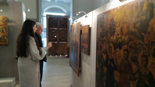 Την έκθεση «Άγιοι Βρακοφόροι και Φουστανελάδες» που φιλοξενείται στο Μουσείο Χριστιανικής Τέχνης στην Αγία Αικατερίνη Σιναϊτών , επισκέφθηκε το πρωί της Πέμπτης 8 Δεκεμβρίου ο Δήμαρχος Ηρακλείου Βασίλης Λαμπρινός.
