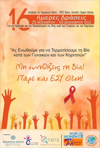 Ο Δήμος Ηρακλείου, μέσω της Δημοτικής Επιτροπής Ισότητας (Δ.ΕΠ.ΙΣ), στο πλαίσιο της Παγκόσμιας Ημέρας Εξάλειψης της Βίας κατά των Γυναικών (25 Νοεμβρίου) συμμετέχει και φέτος στις 16ήμερες δράσεις ενημέρωσης, ευαισθητοποίησης και προβληματισμού της Περιφέρειας Κρήτης (Π.ΕΠ.ΙΣ. Κρήτης)