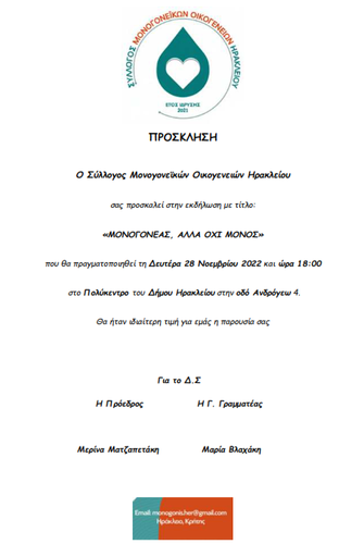 Διοργάνωση: Σύλλογος Μονογονεϊκών Οικογενειών Ηρακλείου.