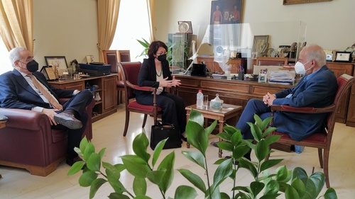 Στη διάρκεια της εθιμοτυπικής συνάντησης συζητήθηκαν θέματα γενικού ενδιαφέροντος όπως οι εξελίξεις στο μέτωπο του πολέμου στην Ουκρανία, η ενεργειακή και η επισιτιστική κρίση . Παράλληλα η κα Fitzgerald έκανε αναφορά στο υψηλό επίπεδο σπουδών του Πανεπιστημίου Κρήτης, ενώ σημείωσε και την δυναμική που παρουσιάζουν τα αγροτικά κρητικά προϊόντα στις αγορές του εξωτερικού και την υψηλή διατροφική τους αξία.