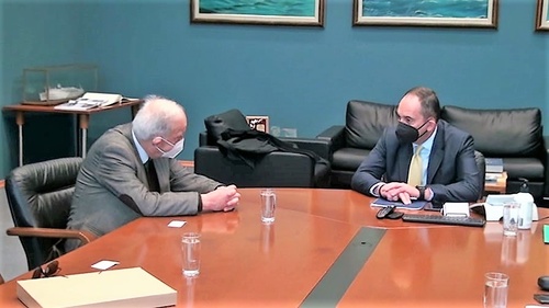 Τέλος, ο Δήμαρχος συναντήθηκε και με τον Υπουργό Ναυτιλίας και Νησιωτικής Πολιτικής Γιάννη Πλακιωτάκη. Στη συνάντηση συμμετείχε και ο Προϊστάμενος Τμήματος Δημοτικής Περιουσίας του Δήμου Ηρακλείου Γιώργος Πολυχρονάκης. Αναφορικά με την παραχώρηση της Χερσαίας Ζώνης από τον Οργανισμό Λιμένος Ηρακλείου στον Δήμο, έγινε γνωστό ότι τα σχετικά έγγραφα υπεγράφησαν από το Υπουργείο Ναυτιλίας και η διαδικασία, σε αυτό το σκέλος της, έχει ολοκληρωθεί. Απομένει η υπογραφή και του Υπουργείου Οικονομικών, για την οποία ο κ. Πλακιωτάκης τόνισε ότι θα παρακολουθεί το θέμα ώστε να προχωρήσει όσο το δυνατόν γρηγορότερα. Όσον αφορά στο αίτημα του Δήμου για την ίδρυση Δημοτικού Λιμενικού Ταμείου στο οποίο θα υπαχθούν το Ενετικό Λιμάνι, το «Μαρίνα», το παλιό ΚΤΕΛ και ο Θεατρικός Σταθμός, ο Υπουργός ανέφερε ότι εξετάζεται.