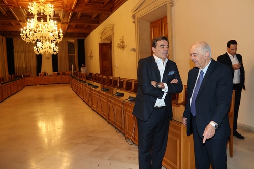 Συνάντηση με τον Αντιπρόεδρο της Ευρωπαϊκής Επιτροπής για την Προώθηση του Ευρωπαϊκού Τρόπου Ζωής Μαργαρίτη Σχοινά είχε ο Δήμαρχος Ηρακλείου Βασίλης Λαμπρινός το βράδυ της Πέμπτης 29 Σεπτεμβρίου, στο γραφείο του στη Λότζια.
