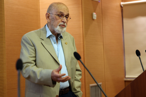 Για το έργο και την προσωπικότητα του τιμώμενου μίλησε ο Ομότιμος Καθηγητής του Πανεπιστημίου Πατρών, πρώην διευθυντής του Ινστιτούτου Χημικής Μηχανικής στην Πάτρα (ενός από τα Ινστιτούτα του ΙΤΕ) και προσωπικός φίλος του κ. Οικονόμου Γεώργιος Παπαθεοδώρου.