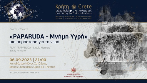 Ακολουθούν την Τετάρτη 6η Σεπτεμβρίου το θεατρικό «PAPARUDA – Μνήμη Υγρή» στο Κηποθέατρο «Μάνος Χατζιδάκις» σε κείμενο και σκηνοθεσία Σοφίας Δερμιτζάκη και την Πέμπτη 7 Σεπτεμβρίου η συναυλία της Θεοδοσίας Τσάτσου στο Κηποθέατρο «Νίκος Καζαντζάκης».