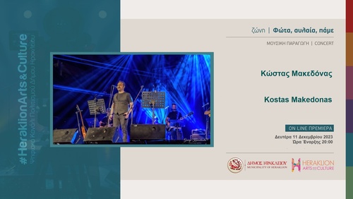 Η συναυλία του Κώστα Μακεδόνα που αποτέλεσε την εναρκτήρια παράσταση του 9ου Φεστιβάλ «Κρήτη μια Ιστορία, 5+1 Πολιτισμοί» 2023 είναι πλέον διαθέσιμη στο κανάλι πολιτισμού Heraklion Arts and Culture και στη Ζώνη θέασης «Φώτα, Αυλαία, Πάμε»