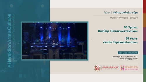 Η συναυλία - αφιέρωμα στα 50 χρόνια παρουσίας του Βασίλη Παπακωνσταντίνου στην μουσική, είναι πλέον διαθέσιμη στο κανάλι πολιτισμού του Δήμου Ηρακλείου Heraklion Arts and Culture και στη Ζώνη θέασης «Φώτα, Αυλαία, Πάμε»!