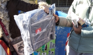 ειδών πρώτης ανάγκης (φαγητό, ζεστά ροφήματα, νερό, κουβέρτες, υπνόσακοι,