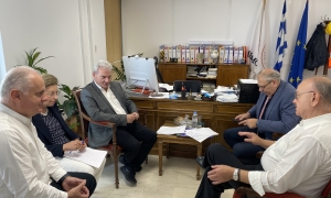 Δυο σημαντικές, διαδοχικές συναντήσεις εργασίας είχε το πρωί της Παρασκευής 17/5 ο Δήμαρχος Ηρακλείου Αλέξης Καλοκαιρινός, με τον Γενικό Γραμματέα του Υπουργείου Εσωτερικών, αρμόδιο για θέματα Οργάνωσης, Αυτοδιοίκησης & Αποκέντρωσης Αθανάσιο Μπαλέρμπα και τον Πρόεδρο του Ταμείου Παρακαταθηκών & Δανείων Δημήτρη Σταμάτη.