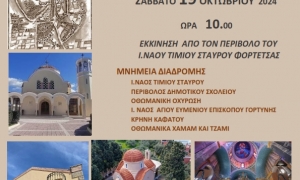 Με ξεναγό την Αθηνά Σφακάκη, οι συμμετέχοντες θα συναντηθούν στις 10 το πρωί στον περίβολο του Ιερού Ναού Τιμίου Σταυρού Φορτέτσας και θα επισκεφθούν τον Ι. Ναό Τιμίου Σταυρού, τον περίβολο του Δημοτικού Σχολείου, την Οθωμανική οχύρωση, τον Ιερό Ναό Αγίου Ευμενίου Επισκόπου Γόρτυνας, την κρήνη Καφάτου και τα οθωμανικά Χαμάμ και Τζαμί.