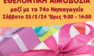 Το Σάββατο 25/05/2024 και θα πραγματοποιηθεί εθελοντική αιμοδοσία στο κέντρο της πόλης του Ηρακλείου και συγκεκριμένα στο αίθριο της Λότζια από τις 9:30 έως τις 14:00. Aυτό το Σάββατο η αιμοδοσία πραγματοποιείται σε συνεργασία με το 74ο Νηπιαγωγείο Ηρακλείου