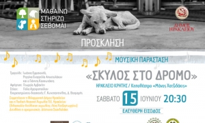 Τη μουσική παράσταση «Σκύλος στο Δρόμο» παρουσιάζει ο Δήμος Ηρακλείου στις 15 Ιουνίου στις 20:30 στο Κηποθέατρο «Μάνος Χατζιδάκις», με ελεύθερη είσοδο, στο πλαίσιο των δράσεων για την ενημέρωση και ευαισθητοποίηση των πολιτών για τη φιλοζωία και το περιβάλλον.