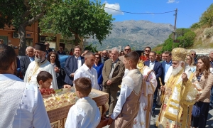Ο Αλέξης Καλοκαιρινός συνοδευόμενος από τη σύζυγό του Άση Λυγερού, παρακολούθησε τη Θεία Λειτουργία στον Ιερό Ναό του Αγίου Μύρωνα Ιερουργούντος του Θεοφιλέστατου Επισκόπου Κνωσού κ. Μεθοδίου ενώ στη συνέχεια συμμετείχε στη λιτανεία των Ιερών λειψάνων του Αγίου, στους κεντρικούς δρόμους του οικισμού. Ο Αλέξης Καλοκαιρινός είχε την ευκαιρία στο πλαίσιο του εορτασμού να συνομιλήσει με πολλούς πολίτες που του επεφύλαξαν θερμό καλωσόρισμα και να ανταλλάξει ευχές μαζί τους.