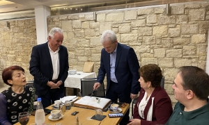 Το απόγευμα της Κυριακής 25/2, οι εθελοντές καθηγητές, -τριες του Κοινωνικού Φροντιστηρίου του Δήμου Ηρακλείου έκοψαν την πίτα τους, παρουσία του Δημάρχου Αλέξη Καλοκαιρινού, των Αντιδημάρχων Παιδείας Αντώνη Περισυνάκη και Εθελοντισμού Φιλαρέτης Δαφέρμου Χρονάκη και της συντονίστριας Μελπομένης Περιστέρη στο καφέ «Μαρίνα».