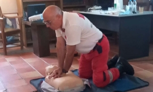 Οι συμμετέχοντες παρακολούθησαν με εξαιρετικό ενδιαφέρον τα μαθήματα Πρώτων Βοηθειών από τον εκπρόσωπο του Ερυθρού Σταυρού Νίκο Δουκιαντζάκη κατά τη διάρκεια του οποίου εκπαιδεύτηκαν σε θεωρητικό και πρακτικό επίπεδο για απόφραξη αεροφόρων σε βρέφος, παιδί, ενήλικα, για τη θέση ανάνηψης σε περίπτωση λιποθυμίας, για την ΚΑΡΠΑ σε βρέφος, παιδί, ενήλικα καθώς και για τη χρήση απινιδωτή.