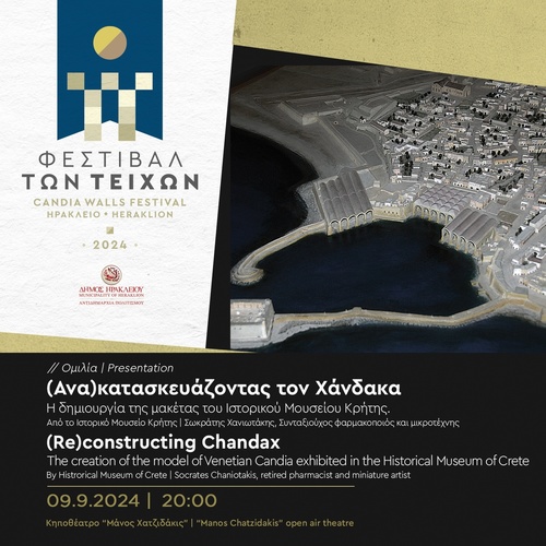 Για περισσότερο από τριάντα χρόνια, η μακέτα της βενετσιάνικης Κάντια εκτίθεται στο ισόγειο του Ιστορικού Μουσείου Κρήτης, στην Αίθουσα Α. Γ. Καλοκαιρινού. Στο διάστημα των ετών αυτών, έχει αξιοποιηθεί για εκπαιδευτικούς σκοπούς, ως αφετηρία πολυάριθμων εκπαιδευτικών προγραμμάτων. Επιπλέον, αποτέλεσε πολύτιμο βοήθημα έρευνας, λόγω της πληρότητας και της ακρίβειας της κατασκευής της. Παράλληλα υπήρξε και εξακολουθεί να είναι ένα από τα ελκυστικότερα εκθέματα του Μουσείου. Η ομιλία με τίτλο «(Ανα)κατασκευάζοντας τον Χάνδακα. Η δημιουργία της μακέτας του Ιστορικού Μουσείου Κρήτης», με υποστήριξη από επιλεγμένο εικονογραφικό υλικό, επιχειρεί να παρουσιάσει το χρονικό κατασκευής της μακέτας, εστιάζοντας σε όλα εκείνα τα στοιχεία που συνέβαλαν στο να προκύψει αυτό το άρτιο αποτέλεσμα. Η αναπαράσταση της βενετσιάνικης Κάντια βασίστηκε στη συστηματική εργασία μιας ομάδας ανθρώπων, η οποία μελέτησε πηγές της εποχής και νεότερη βιβλιογραφία, χάρτες και φωτογραφικό υλικό. Ο ομιλητής, Σωκράτης Χανιωτάκης, ήταν μέλος της ομάδας εργασίας και υπεύθυνος κατασκευής της μακέτας. Στην ομάδα, η οποία συστήθηκε στο πλαίσιο του προγράμματος ΜΟΠ Κρήτης, συμμετείχε η αρχιτέκτονας, μηχανικός και αρχαιολόγος Χρυσούλα Τζομπανάκη και η Λιάνα Σταρίδα, αρχαιολόγος της τότε 13ης Εφορείας Βυζαντινών Αρχαιοτήτων Ηρακλείου για την επιστημονική υποστήριξη, ενώ την εποπτεία της εργασίας είχε η επιμελήτρια του Ιστορικού Μουσείου Κρήτης, Λουίζα Καλοκαιρινού. Συμμετείχαν επίσης οι Αικατερίνη Καλλέργη και Κωνσταντίνος Βιολάκης, εργαζόμενοι στο Ιστορικό Μουσείο Κρήτης.