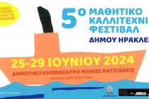 Ξεκινά σήμερα 25 Ιουνίου το 5ο Μαθητικό Καλλιτεχνικό Φεστιβάλ το οποίο διοργανώνει ο Δήμος Ηρακλείου δια της Αντιδημαρχίας Παιδείας, σε συνεργασία με τη Διεύθυνση Δευτεροβάθμιας Εκπαίδευσης Ηρακλείου.
