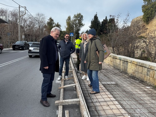 Μια ακόμη αυτοψία στις εργασίες διαμόρφωσης της απρόσκοπτης πεζής διαδρομής στη Λ. Ικάρου, από το ύψος του υπεραστικού ΚΤΕΛ προς το Αρχαιολογικό Μουσείο Ηρακλείου πραγματοποίησε ο Δήμαρχος Ηρακλείου Αλέξης Καλοκαιρινός, μαζί με τον Αντιδήμαρχο Τεχνικών Υποδομών & Βιώσιμης Κινητικότητας Γιώργο Σισαμάκη και στελέχη της Τεχνικής Υπηρεσίας.