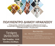 Με τη δεύτερη εκδήλωση την Τετάρτη 26/3 συνεχίζεται ο διάλογος προβληματισμού που ξεκίνησε ο Δήμος Ηρακλείου μέσω του κύκλου ομιλιών «Κοινωνία και Ζώα», με σκοπό την ενημέρωση των πολιτών σε θέματα που αφορούν στις συνέπειες της κυριαρχίας του ανθρώπου στην φύση και στα δικαιώματα των ζώων, στο πλαίσιο της κοινής μας συνύπαρξης.