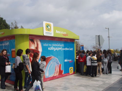 Με πρώτους χρήστες 100 περίπου μαθητές Δημοτικών Σχολείων άρχισαν να λειτουργούν το πρωί της Τετάρτης 10 Μάρτη 2010 τα 2 πρώτα κέντρα ανταποδοτικής ανακύκλωσης της πόλης μας.
