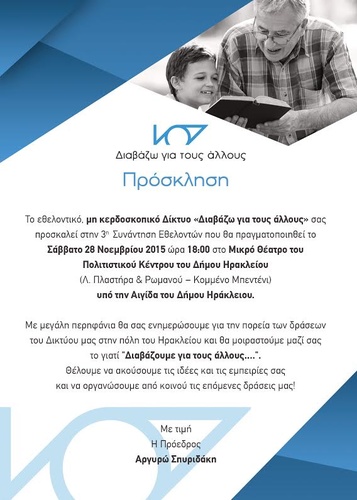 η επόμενη συνάντηση Εθελοντών του Διαβάζω για τους άλλους θα
