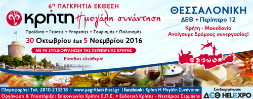 Με μεγάλη επιτυχία και με κάθε επισημότητα πραγματοποιήθηκαν τα εγκαίνια της 6ης Παγκρήτιας Έκθεσης «ΚΡΗΤΗ: Η Μεγάλη Συνάντηση» που γίνεται στη Θεσσαλονίκη, στη ΔΕΘ, στο περίπτερο 12, από 30 Οκτωβρίου έως 5 Νοεμβρίου.