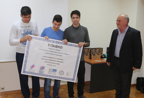 Το έπαθλο κατέκτησε ομάδα μαθητών του Πειραματικού λυκείου, η οποία προτείνει μια θήκη κινητού τηλεφώνου με πολλαπλές εφαρμογές σε θέματα άθλησης, υγείας κλπ.