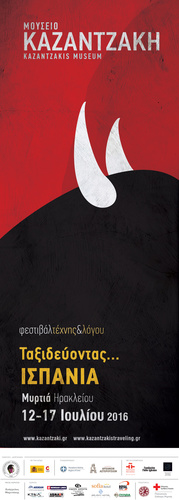 Η φετινή διοργάνωση, που θα είναι αφιερωμένη στην Ισπανία, μια χώρα που σημάδεψε βαθιά τη ζωή και το έργο του σπουδαίου συγγραφέα, θα πραγματοποιηθεί από τις 12 ως τις 17 Ιουλίου 2016. Μέσα από ένα εξαήμερο εκδηλώσεων στο Ηράκλειο και τη Μυρτιά, δίνεται η δυνατότητα σε μικρούς και μεγάλους να έρθουν σε επαφή με ψήγματα –εικόνες, ήχους, χρώματα, γεύσεις και μυρωδιές– της Ισπανίας του Καζαντζάκη. Άλλωστε, η Ισπανία ήταν ο τόπος, που μετά την Ελλάδα και μάλιστα τη γενέτειρά του την Κρήτη, ο Νίκος Καζαντζάκης αγαπούσε περισσότερο.