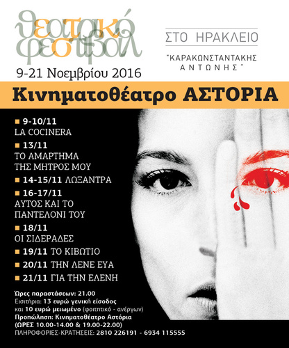 Από 9-21 Νοεμβρίου στο Ηράκλειο, στο Κινηματοθέατρο Αστόρια, θα παρουσιαστούν μια σειρά από παραστάσεις με ξεχωριστό καλλιτεχνικό ενδιαφέρον, παραστάσεις που επιλέχθηκαν με κριτήριο να παρουσιάσουν ένα μεγάλο καλλιτεχνικό γεγονός στην πόλη, ιδιαίτερα τη συγκεκριμένη χρονική συγκυρία.