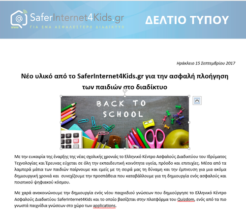 Νέο υλικό από το SaferInternet4Kids.gr για την ασφαλή πλοήγηση των παιδιών στο διαδίκτυο