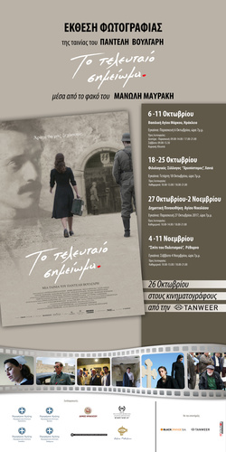 Έκθεση φωτογραφίας από τα γυρίσματα της τελευταίας ταινίας του Παντελή Βούλγαρη, «Το τελευταίο σημείωμα», με υλικό «μπροστά και πίσω από τις κάμερες» πραγματοποιεί η Περιφέρεια Κρήτης με τις τέσσερις Περιφερειακές Ενότητες και Δήμους. Η αυλαία των εκθέσεων ανοίγει αύριο Παρασκευή από το Ηράκλειο όπου στις 7 μ.μ. στη Βασιλική του Αγ. Μάρκου θα γίνουν τα εγκαίνια και θα ακολουθήσουν ανάλογες εκδηλώσεις στις πρωτεύουσες των Περιφερειακών Ενοτήτων. Ο ερασιτέχνης φωτογράφος Μανώλης Μαυράκης, με αφορμή τη συμμετοχή του στην ταινία ως ηθοποιός, κατέγραψε με το φακό του το χρονικό της υλοποίησή της ταινίας σε 2.000 στιγμιότυπα, όπου τα 180 από αυτά παρουσιάζονται σε διαδοχικές εκθέσεις φωτογραφίας σε Ηράκλειο, Χανιά, Ρέθυμνο, Άγιο Νικόλαο Λασιθίου, τον Οκτώβρη και τον Νοέμβρη του 2017, σε συνδιοργάνωση της Περιφέρειας Κρήτης της ΠΕ Ηρακλείου, ΠΕ Χανίων, ΠΕ Ρεθύμνου, ΠΕ Λασιθίου, του Δήμου Ηρακλείου, του Δήμου Ρεθύμνου, του Δήμου Αγίου Νικολάου Λασιθίου και του Πολιτιστικού Μορφωτικού Συλλόγου Καντανιωτών «Καντάνια».