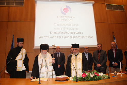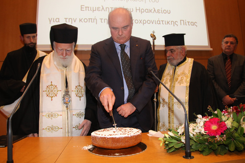 Την Πρωτοχρονιάτικη πίτα ευλόγησε ο Αρχιεπίσκοπος Κρήτης κ. Ειρηναίος και ακολούθησε η ομιλία του Προέδρου του Επιμελητηρίου Ηρακλείου κ. Μανώλη Αλιφιεράκη, ο οποίος αναφέρθηκε στην απώλεια της Βιργινίας Μανασάκη Ταβερναράκη, συζύγου του Γιώργου Ταβερναράκη, μέλους της Διοικητικής Επιτροπής του ΚΕΚ ΕΠΙΜΕΛΗΤΗΡΙΟΥ, και ζήτησε από τους παρευρισκόμενους να τηρήσουν ενός λεπτού σιγή στη μνήμη της.