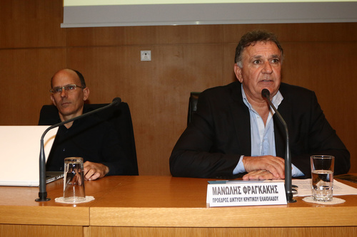 Ο Πρόεδρος του Δικτύου Κρητικού Ελαιόλαδου και Α’ Αντιπρόεδρος του Επιμελητηρίου Ηρακλείου κ. Μανώλης Φραγκάκης, ο οποίος συντόνιζε την εκδήλωση αναφέρθηκε στο σημαντικό ρόλο που έχει αναλάβει το Δίκτυο για την αναγνώριση της διατροφικής αξίας του κρητικού ελαιόλαδου, με τελευταία, σημαντική επιτυχία την υποχρεωτική τοποθέτηση τυποποιημένου ελαιόλαδου στους χώρους μαζικής εστίασης. Ο κ. Φραγκάκης παρουσίασε επίσης τις δράσεις που έχει αναλάβει το Δίκτυο για τη στήριξη της εξωστρέφειας των κρητικών επιχειρήσεων που ασχολούνται με την παραγωγή, τυποποίηση και εμπορία του.